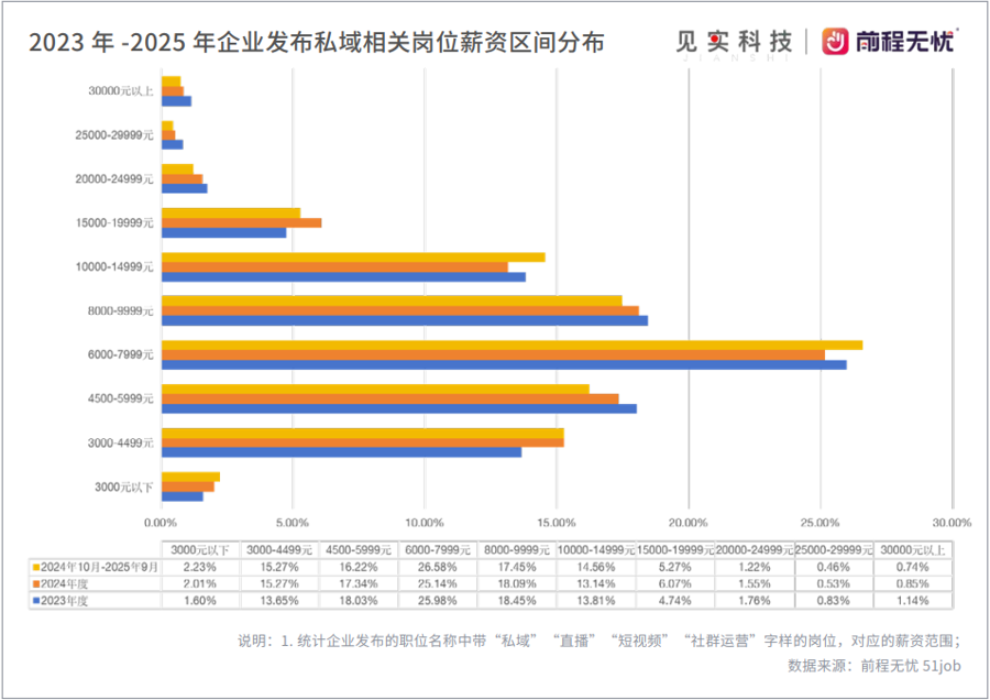 私域人才有何发展的新趋势与新机遇?日前,前程无忧51job与见实联合发布的《2026私域人才需求与薪酬报告》显示,这一领域的人才薪资稳中有升。